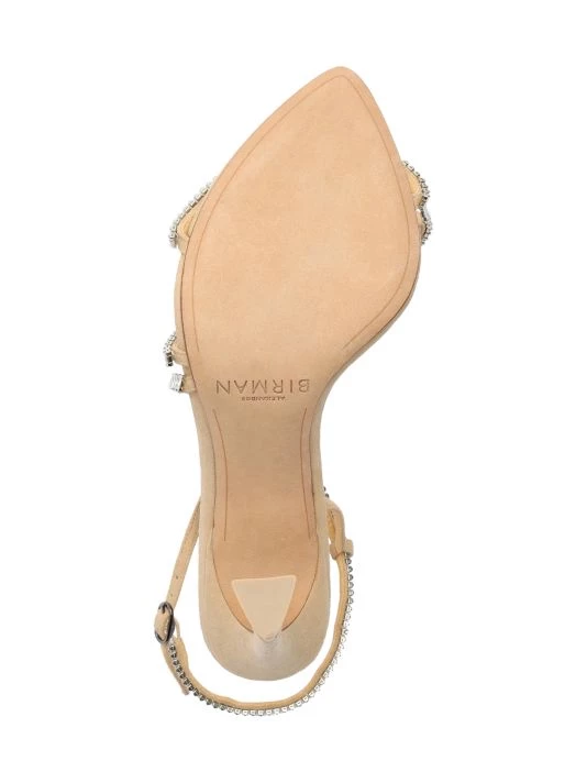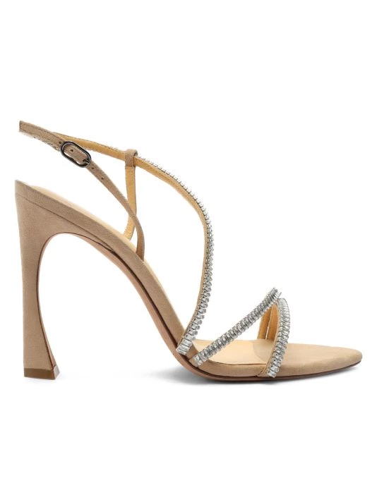 Heeled suede sandals with an embellished strappy design.