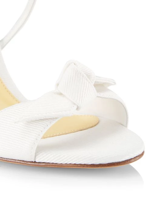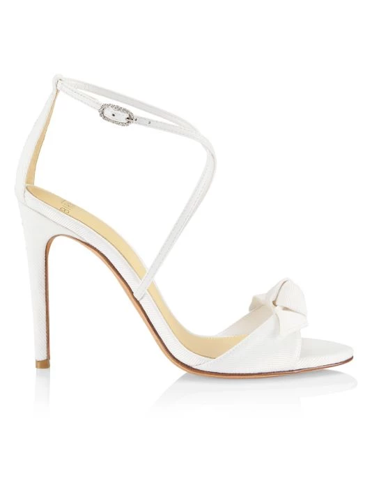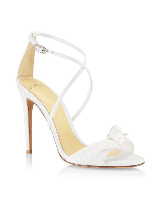 ONLY AT SAKS. Crafted of lustrous satin, Alexandre Birman’s Clarita sandals are designed with a stiletto heel. This style boasts a knotted toe strap with crisscross straps and a crystal-embellished buckle.