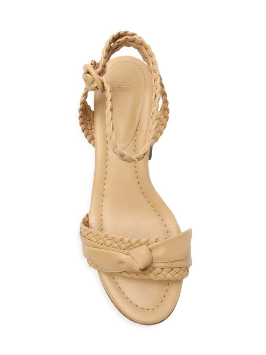 Anchored by a wooden platformed block heel, the Clarita sandals by Alexandre Birman are crafted of woven leather adorned with a signature bow.