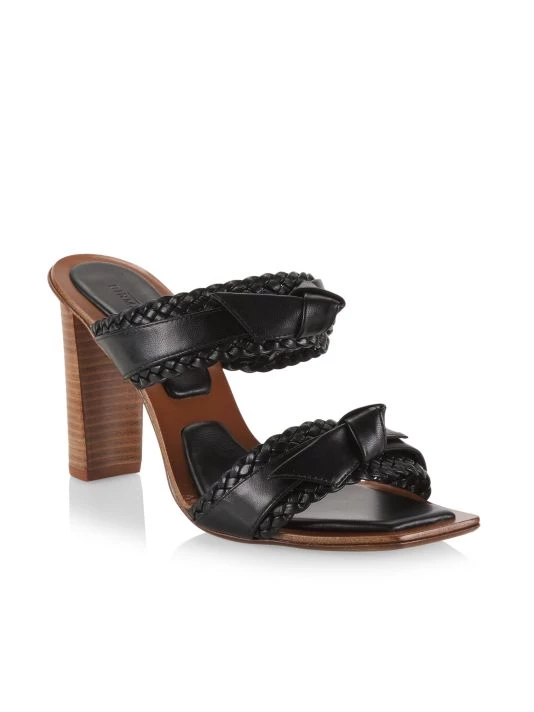 Featuring double straps with the signature bow, Alexandre Birman’s Clarita mules are crafted of woven leather. This slip-on pair is anchored by a stacked block heel.