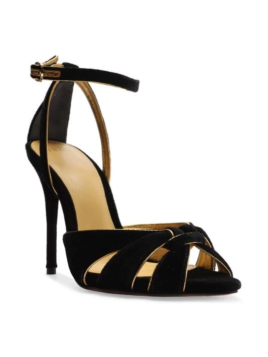 The Dominique sandals from Alexandre Birman are crafted of plush velvet with a knotted vamp design.