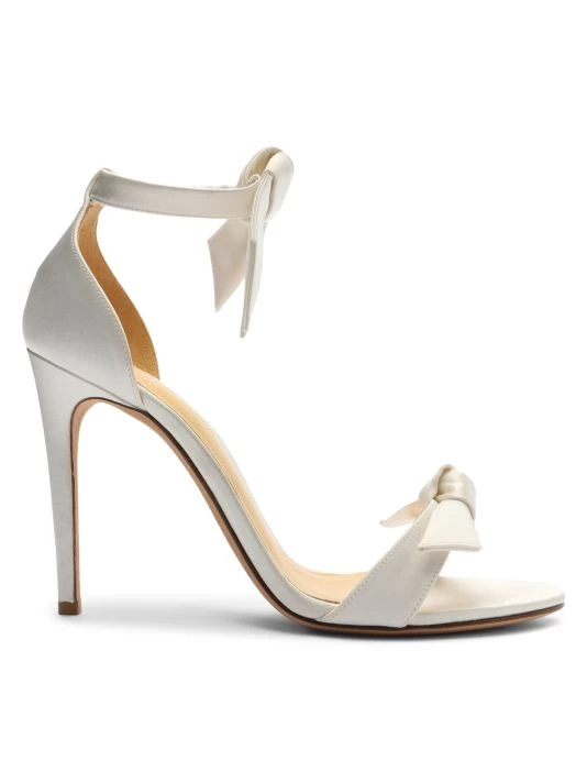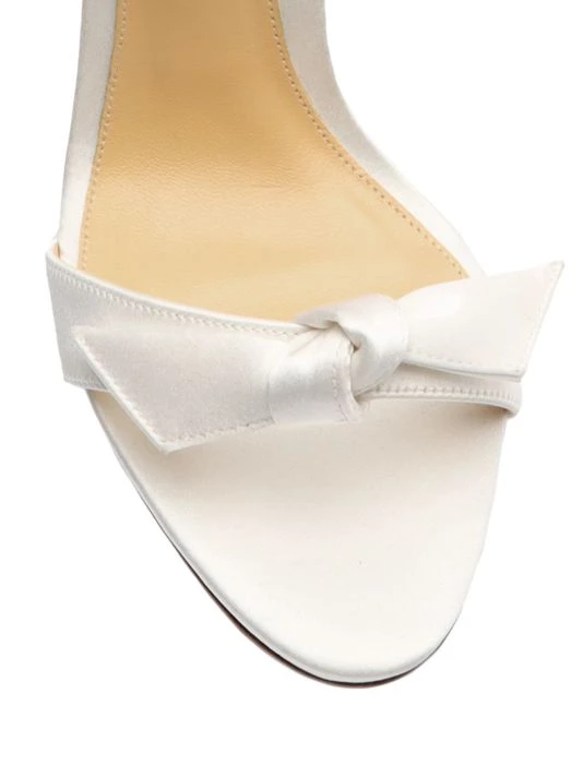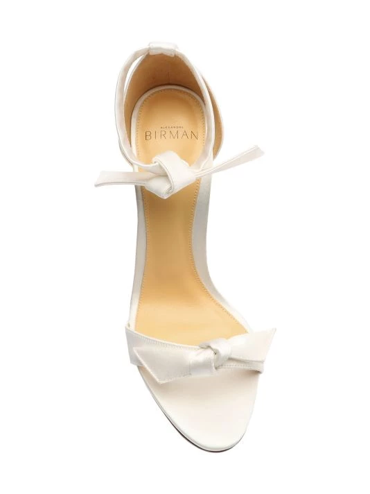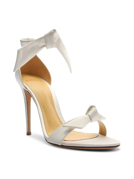 Crafted of luxe satin, these stiletto sandals feature Alexandre Birman’s signature knotted trim at the ankle and toe straps.