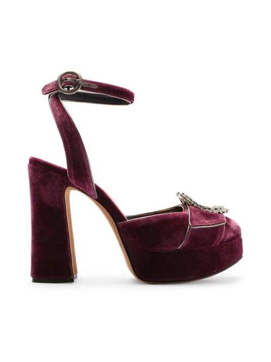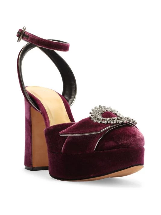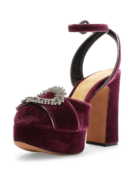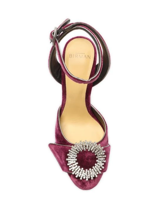 Alexandre Birman’s Madelina Curve sandals are crafted of luxe crushed velvet and topped with a crystal-embellished buckle on the vamp.