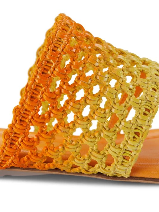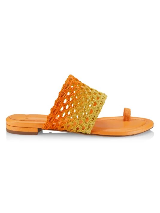From the Trisha Collection.The Trisha Sandal is a flat silhouette showcasing a bold woven strap that’s cast in a chic ombre palette.