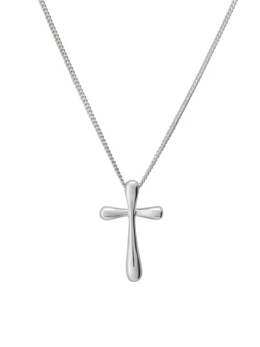 Cross-shaped pendant inspired by water drops. Handmade in sterling silver by TANE’s expert artisans in Mexico.