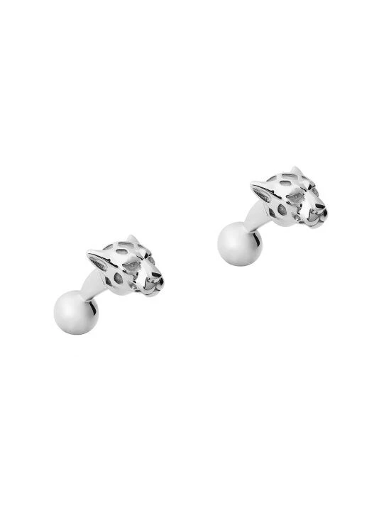From the Jaguar Head Collection. These sterling silver cufflinks feature hand-carved jaguar head motifs.