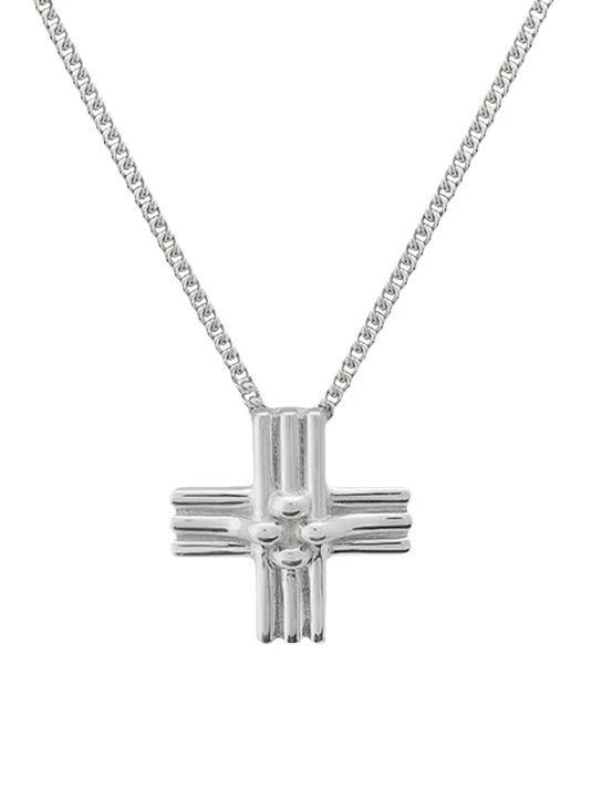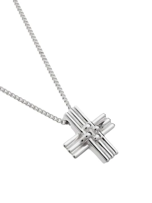 Cross-shaped pendant inspired by artisan weaving techniques. Handmade in sterling silver by TANE’s expert artisans in Mexico.