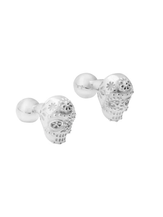 From the Mexico Mi Amor Collection: sterling silver cufflinks with the shape of sugar skulls, popular during the Mexican celebration of the Day of the Dead. Handmade by TANE’s expert artisans in Mexico.