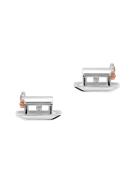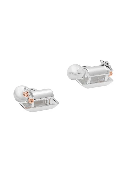 From the Mexico Mi Amor Collection. Sterling silver and rose gold vermeil cufflinks with the shape of Trajineras, traditional boats found in Mexico City’s floating gardens. Handmade by TANE’s expert artisans in Mexico.