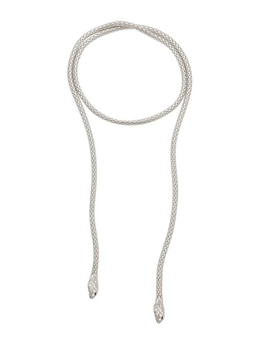 This wrap necklace is enhanced with a snake motif, featuring sterling silver scales and snakeheads at each end.